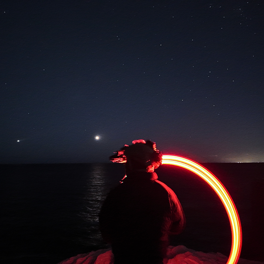 A multi-functional device combining a flashlight, chemlight alternative, and signalling tool in one compact unit.